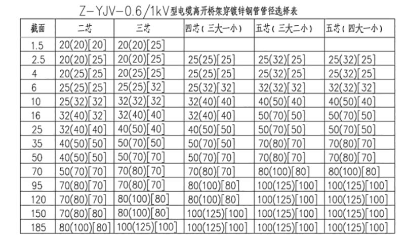 5、電纜線管管徑選擇: