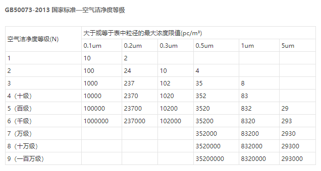 空氣潔凈度等級(jí)(air cleanliness class):潔凈空間單位體積空氣中,以大于或等于被考慮粒徑的粒子最大濃度限值進(jìn)行劃分的等級(jí)標(biāo)準(zhǔn)。國內(nèi)按空態(tài)、靜態(tài)、動(dòng)態(tài)對(duì)無塵車間進(jìn)行測(cè)試、驗(yàn)收,符合《GB50073-2013 潔凈廠房設(shè)計(jì)規(guī)范》、《GB50591-2010 潔凈室施工及驗(yàn)收規(guī)范》。